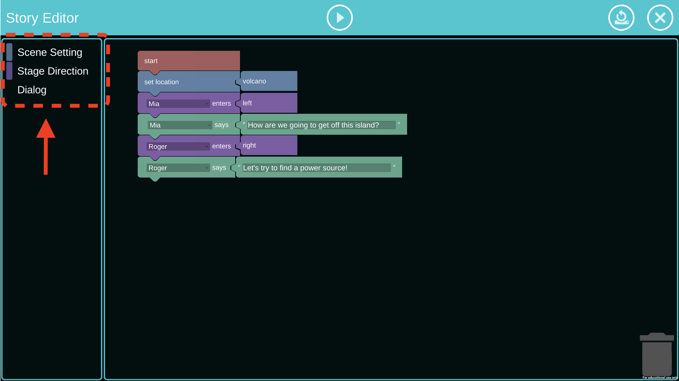 class: title-slide, inverse, center, top background-image: url(img/wested-vector-logo.png), url(img/ncstate-brick-2x1-red.png), url(img/CEI_logo_Transparent_Dark3-1024x512.png) background-position: 5% 99%, 53% 90%, 95% 95% background-size: 25%, 20%, 20% # Teacher Perspectives on a Narrative-Centered Learning Environment to Promote Computationally-Rich Science Learning through Digital Storytelling ---- ### Jennifer Houchins, Kimkinyona Cully\*, Danielle Cadieux Boulden, Kevin Oliver, Andy Smith, James Minogue, Bradford Mott, Rasha Elsayed\*, Aleata Hubbard Cheuoua\*, Cathy Ringstaff\* <br/> ### North Carolina State University ### WestEd\* ### March 24, 2021 --- # Agenda .font130[- Intro - Study Design and Context - Participants - Methods - Results * Facilitating Story Creation * Usability * Content Integration - Conclusions ] --- # Introduction <br/> .font130[ - Although .red[**K-5 teachers are uniquely positioned to integrate CT across the multiple disciplines**] they teach, little is known about learning technologies and in-platform supports that could facilitate their integration efforts (Kale et al., 2018; Pila et al., 2019). - Our team is iteratively developing a .red[**narrative-centered digital learning environment**] to explore computationally-rich science learning for upper elementary students. - Digital narrative creation allows students to explore scientific phenonomena (Henriksen et al., 2016), while reflecting on CT concepts throughout the story creation process (Lee et al., 2014). ] --- # Study Design and Context .font130[ We used a .red[**60 minute focus group**], held virtually via Zoom, to gather feedback from elementary teachers about the .red[**design our learning platform**] and its .red[**usability**] for classroom and distance learning settings. Our study aimed to .red[**examine teachers’ perspectives**] on the environment’s custom narrative blocks and its .red[**integration of science, English language arts, and computational thinking**]. To this end, we framed our study with the following research questions:] .warmyellow[<b> 1. How do teachers perceive that the learning environment facilitates story creation with narrative blocks? 2. How usable do teachers perceive the learning environment to be? What supports or additional features do teachers feel are needed in the learning environment? 3. How does the learning environment content integration differ from teachers’ instructional practices in science? English language arts? Computational thinking? <b/>] --- # Focus Group Participants .pull-left[ <br/>  ] .pull-right[ .font120[ <b>Setting:</b> - Interactive video conference in Fall 2020, including 2 breakout rooms <b>Participants:</b> - 4 Fourth grade teachers * 3 female, 1 male - 75% of teachers cover physical science, coding activities in their classes - All teachers from Northern CA ]] --- # Methods .font130[ - Our .red[**focus group protocol had three parts**]: 1. an introduction to the study and learning environment 2. teacher experimentation with the learning environment 3. post-experimentation focus group interview - Rapport was established via an icebreaker activity - .red[**Teachers were randomly assigned**] to breakout rooms for the .red[**think-aloud activity**] and .red[**environment experimentation**] - .red[**All teachers**] came back to the main session after the think-aloud and were asked to .red[**share their perspectives via open ended questions**] ] --- # Breakout Session - Narrative Planning .pull-left[<br/> <br/><br/><br/> .font130[Teachers initially spent some time .red[**planning their digital narratives**] using a planning document shown here.] .font130[This phase of the study activity's breakout session lasted .red[**10 minutes**].] ] .pull-right[ <img src="img/narrative-planning-template.jpg" width="80%" height="80%"/> ] --- # Breakout Session - Environment Experimentation .font130[Teachers then spent the next .red[**20 mins experimenting with the environment**] and .red[**developing their digital narratives**].] .pull-left[ ### Narrative Designer ] .pull-right[ ### Animation <img src="img/animation1.png" width="100%"/> ] --- class: clear background-image: url(img/animation1.png) background-size: cover background-position: center -- background-image: url(img/custom-narrative-blocks.png), url(img/animation1.png) background-size: 50%, cover background-position: 90% 20%, center --- # Results .font130[Our team .red[**qualitatively coded the transcribed audio**] from the think-aloud environment experimentation and the focus group interview questions using .red[**three overarching themes**] aligned to our research questions:] <br/><br/><br/> -- <br/> .center[.font150[.warmyellow[**Facilitating Story Creation**]]] <br/> -- <br/> .center[.font150[.warmyellow[**Usability**]]] <br/> -- <br/> .center[.font150[.warmyellow[**Content Integration**]]] <br/> --- # Facilitating Story Creation <br/> .font130[Custom narrative-blocks aided teachers’ digital story development.] .font130[Even though unfamiliar with the environment, encountering the custom narrative blocks spurred the creation of their narratives.] .font110[.center[.red[*<b>“So, location. So, do we want to be at the beach or waterfall?”</b>*]]] .font130[Character- and dialog- focused blocks were perceived as intuitive and teachers spent much of their time on building character dialogs.] .font110[.center[.red[*<b>“So now we have all of our people and then Hailey says, ‘They arrive at the waterfall, right?’ Because they're just walking at the waterfall and they arrive at the waterfall and what is Hailey saying.”</b>*]]] --- # Facilitating Story Creation (cont) <br/> .font130[Teachers also incorporated elements of problem-solving into their narratives.] .font110[.center[.red[*<b>“So, we have a shelter and a water source, but we need a power source. A question for the audience might be, how do we get our power source?”</b>*]]] .font130[Mismatches between teacher expectations a